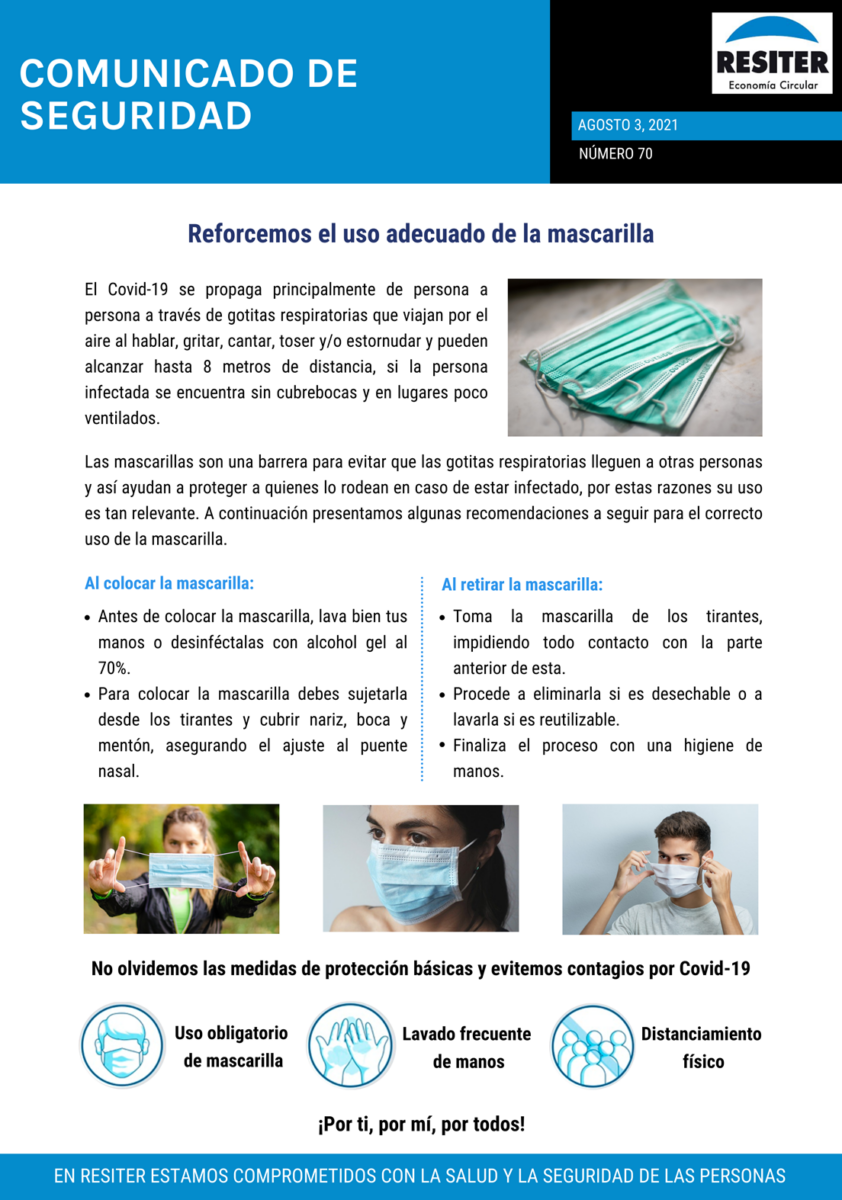 LA MASCARILLA ES LA PRINCIPAL BARRERA PARA EVITAR EL CONTAGIO DE COVID-19. ANTES DE UTILIZARLA, LAS MANOS DEBEN SER BIEN LAVADAS.